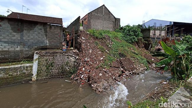Dari pengamatan detikJatim di lokasi, bekas runtuhan talud masih ada di sungai. Sebagian bidang tanah milik warga ikut tergerus air. Selain itu tanah di seberang sungai turut hanyut tersapu aliran air sungai.