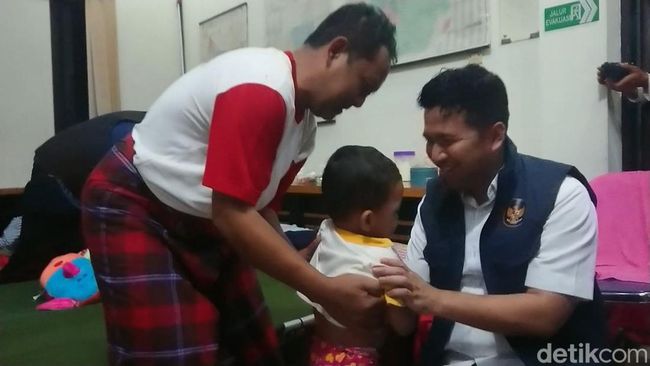 "Hangat ini badannya, coba nanti diperiksa tim medis," kata Wagub Emil saat berinteraksi dengan balita korban banjir di pengungsian, Rabu (19/10/2022) malam.