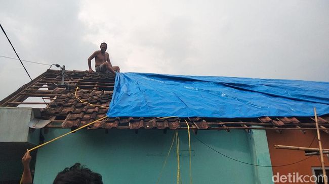 "Kejadian kemarin jam 2 sore. Atap rumah kena, dari depan sampai belakang kena semua. Ini tadi beli sendiri dua terpal," kata Supri kepada detikJatim, Senin (24/10/2022).