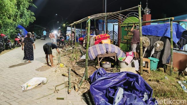 Bahkan, ada sejumlah warga yang mendirikan tenda seadanya menggunakan tiang bambu dengan atap terpal untuk menutupi perabot yang mereka bawa.