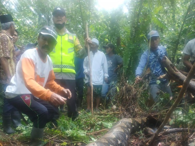 "Pada saat melakukan penyisiran tim menemukan seekor ular piton besar sepanjang 7 meter yang dicurigai telah memangsa korban. Kemudian tim langsung menangkap ular tersebut untuk memastikan bahwa korban hilang ada di dalam perut ular," katanya.