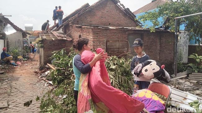 Ratusan rumah di Dusun Mlaten, Desa Sidokepung, Sidoarjo, porak poranda disapu angin puting beliung. Para siswa yang terdampak tak diwajibkan masuk sekolah.