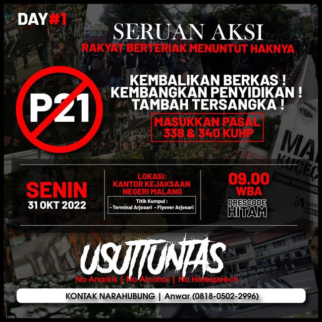 "Kami kemarin sudah merilis untuk mendesak agar jangan sampai ada pemberkasan P21 terlebih dahulu. Besok kita turun untuk mendesak Kejari meneruskan ke Kejati agar sebelum P21, berkas dikembalikan terlebih dahulu (ke penyidik Polda Jatim)," kata Anwar.