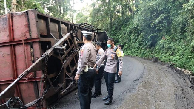 "Apalagi saat kejadian hujan deras, jadi harus hati-hati dan sempat menyulitkan untuk memindahkan muatan truk ke bahu jalan. Juga badan bak truk yang posisinya terguling," imbuhnya.