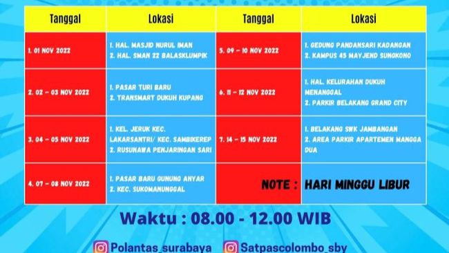 Selama November 2022 ini Polrestabes Surabaya sudah menjadwal lokasi mangkal layanan SIM keliling di 2 tempat setiap harinya.
