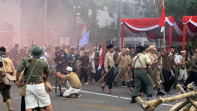 "Keren banget, bagus sekali. Waktu dimulai sangat tegang, apalagi ada tembakan-tembakan, sampai terharu saya melihat perjuangan para pahlawan dulu. Sampai nangis tadi," kata Via, salah satu warga kepada detikJatim, Minggu (6/11/2022).
