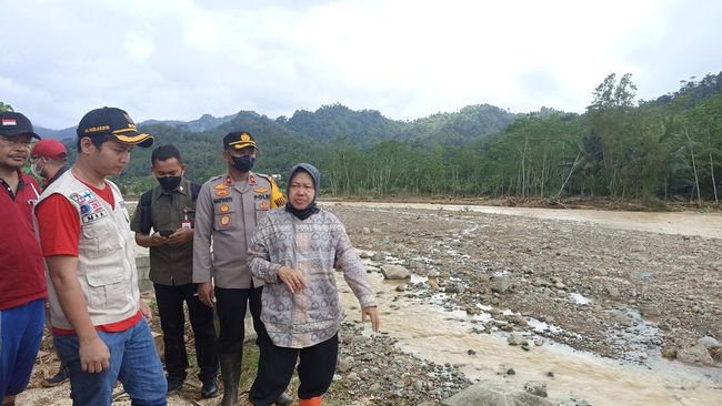 Mensos Tri Rismaharini meninjau langsung dampak bencana banjir yang menerjang empat desa di Kecamatan Munjungan, Trenggalek. Mensos menyebut kondisi sungai sangat kritis dan butuh penanganan segera.