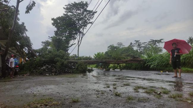 "Iya ada satu pohon tumbang di Jalan Raya Desa Bacem, Kecamatan Ponggok. Pohonnya tumbang ke arah tengah jalan, jadi menutup akses jalan," ujar anggota Polsek Ponggok Bripka Suharyono sata dikonfirmasi detikJatim, Senin (7/11/2022).
