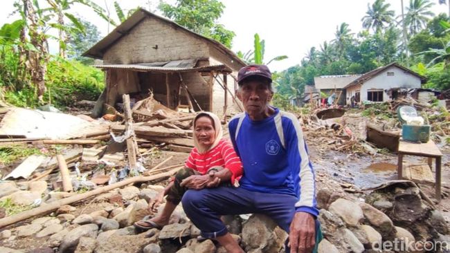 Sujiyono (60) dan Sumiyati (59), pasutri lansia warga Dusun Krajan, Desa Kalibaru Kulon adalah korban selamat bencana banjir bandang. Mereka enggan dipisahkan oleh maut.