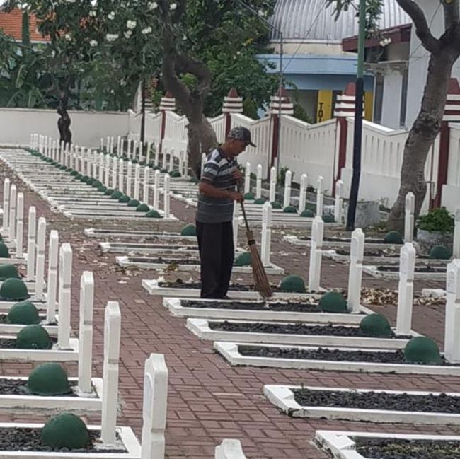 Setiap hari, pagi dan sore, ia selalu membersihkan ratusan makam pahlawan. Saat momen hari pahlawan, dia datang lebih awal.
