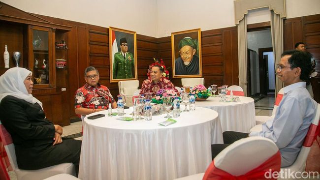 Hasto melanjutkan, pertemuannya dengan Khofifah di rumah dinas Wali Kota Surabaya Eri Cahyadi, Kamis (10/11), salah satunya membahas terkait pembangunan di Jatim.