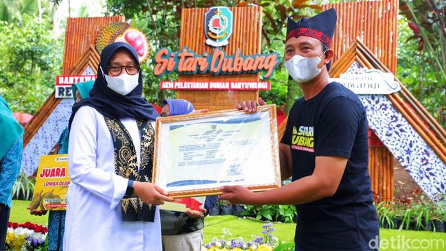 "Selamat kepada semua petani yang membudidayakan durian merah di Banyuwangi. Pendaftaran ini sebagai upaya melindungi sekalgus melestarikan durian lokal Banyuwangi," kata Ipuk saat menyerahkan tanda daftar varietas kepada petani lokal setempat, di sela-sela Aksi Pelestarian Durian Banyuwangi (Si Tari Dubang) di Kampung Duren, Desa Songgon, Kecamatan Songgon, Minggu (13/11/2022).