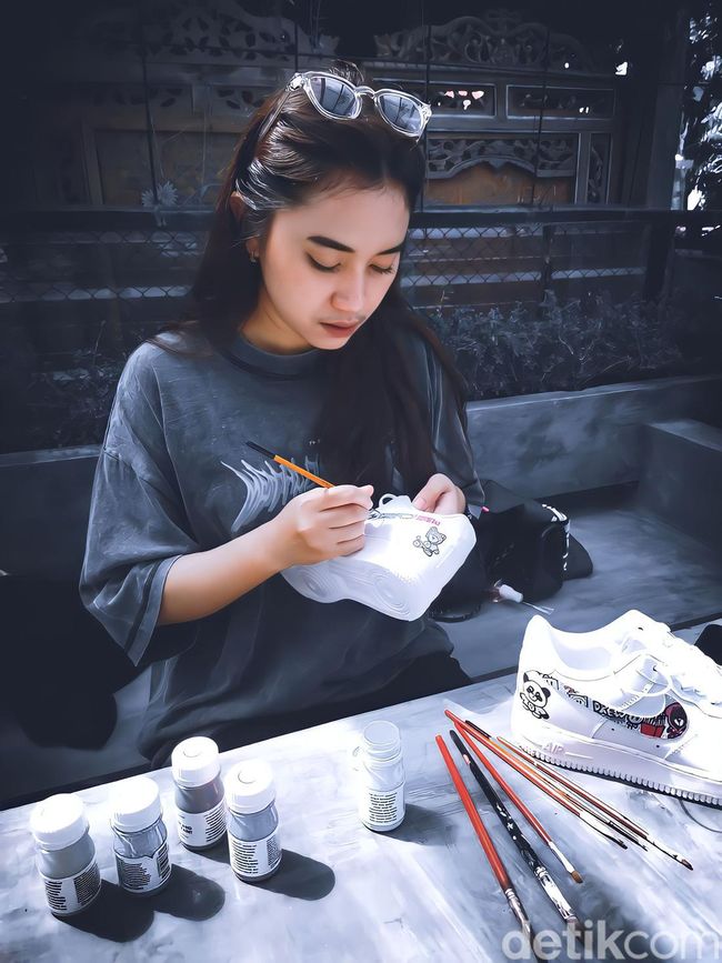 "Itu awalnya tahun 2020 banyak anak Indonesia yang sekolah di luar negeri pesen sepatu lukis. Kemudian tahun 2021 dipasarkan ke luar negeri lewat forum dan banyak permintaan dari orang asing. Sejauh ini paling banyak dari Belanda dan Amerika yang pesen," terang gadis berusia 25 tahun ini.