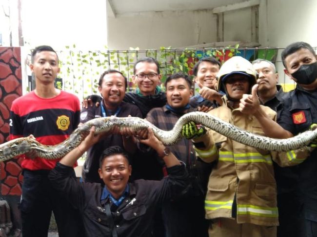 Menurut petugas, ular yang ditemukan itu jenis Ular Sanca. Ular itu pun berhasil dievakuasi oleh sejumlah petugas PMK Surabaya.