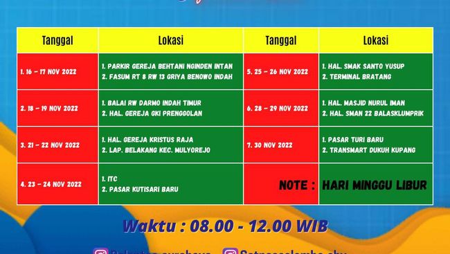 Berikut ini daftar lokasi SIM Cak Bhabin sejak bulan ini hingga akhir November 2022. Layanan SIM keliling ini libur di Hari Minggu.