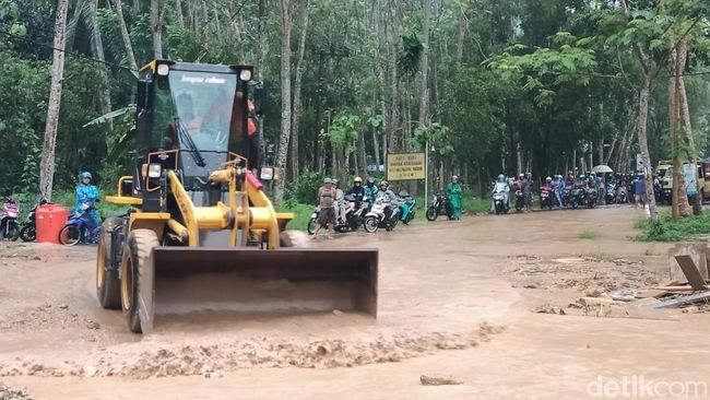 Hingga pukul 16.30 WIB proses pembersihan masih berlangsung. Upaya itu melibatkan satu unit Wheel Loader milik UPT Dinas Bina Marga Provinsi Jawa Timur. Alat berat tersebut sebelumnya disiagakan di Desa Kedungbendo.