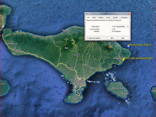 Danlanal Banyuwangi, Letkol Laut (P) Ansori mengatakan, KM Mutiara Timur I tenggelam di titik lokasi kebakaran. Lokasi titik tenggelamnya KM Mutiara Timur I, berada di 08⁰ 20' 24" S dan 115⁰ 41' 42" T.