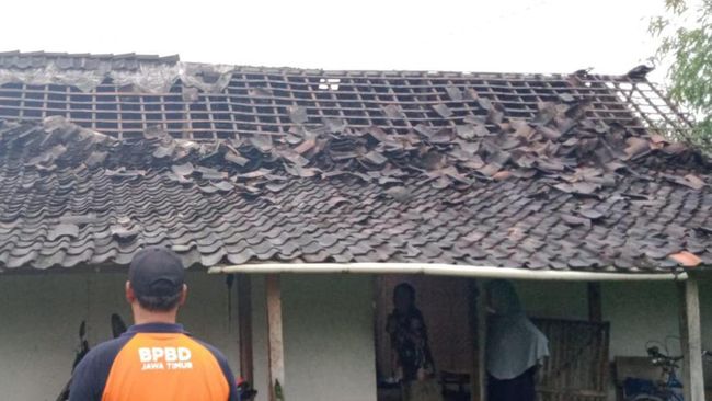 "Lokasi dua rumah terdampak berjarak jauh. Satu di Sine dapur tertimpa pohon dan yang di Kasreman hanya genting beterbangan," kata Anang.