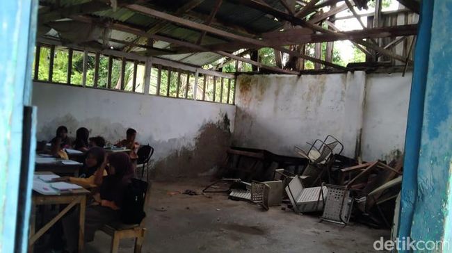 "Siswanya keseluruhan kurang lebih 38 kelas 1 sampai kelas 6, ruang kelasnya ada 5 sama ruang guru," kata Rido.
