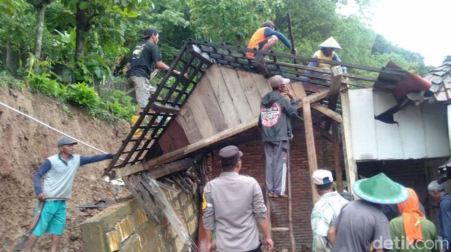 "Kami bersama petugas gabungan dan warga melakukan evakuasi material tanah dan kembali memperbaiki rumah Pak Jamin yang rusak dan miring. Kejadian longsor terjadi karena curah hujan," ujar Kapolsek Sekar, Iptu Nur Sayit.