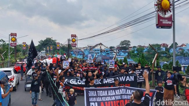 Salah satunya massa mengatasnamakan Bok Gloedoek melakukan long march di Jembatan Embong Brantas menuju SPBU Brantas, Kelurahan Kiduldalem, Kecamatan Klojen, Kota Malang.