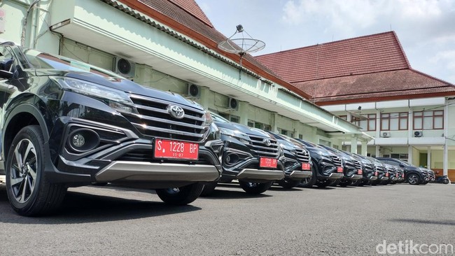 Pantauan detikJatim, deretan mobil itu terparkir rapi di halaman utara gedung Pemkab Bojonegoro. Mobil kinyis-kinyis itu sudah dipasang pelat berwarna merah.