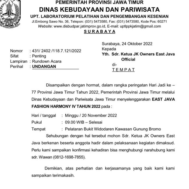 Plt Kadisbudpar Jatim Sinarta mengakui adanya kecerobohan tersebut. Pihak UPT Disbudpar Jatim lupa mengabarkan ke komunitas Rubicon bahwa acara East Java Harmony yang awalnya 20 November 2022 dimundurkan jadi 3 Desember 2022. Sementara rombongan Rubicon yang memegang undangan tanggal 20 November 2022 tetap berangkat ke Bromo H-1 sebelum acara.