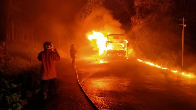"Sesaat setelah semua penumpang keluar tidak lama kemudian bus terbakar merata," ujarnya.
