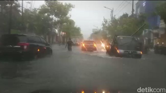 Pantauan detikJatim, tampak air menggenangi sejumlah ruas jalan protokol. Antara lain di Jalan Panglima Sudirman, Pattimura, Mastrip, Panglima Polim dan Teuku Umar.