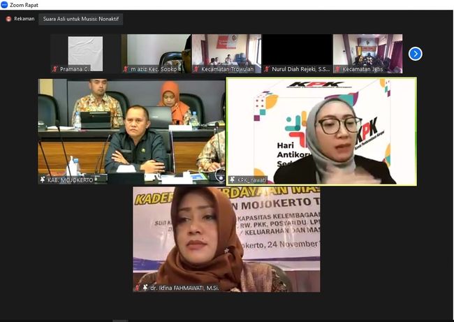 Berbagai upaya terus dilakukan Bupati Ikfina Fahmawati untuk membangun budaya antikorupsi di Pemkab Mojokerto. Salah satunya dengan menggelar webinar menggandeng Komisi Pemberantasan Korupsi (KPK). Seminar secara daring ini diharapkan mampu meningkatkan integritas seluruh ASN.