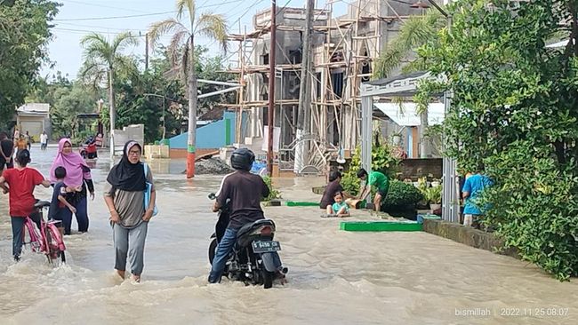 "Untuk Desa Sidobandung sekitar 200-an rumah yang tergenang saat ini. Untuk jalan poros desa juga ada yang tergenang," kata Kades Sidobandung, Sukijan.