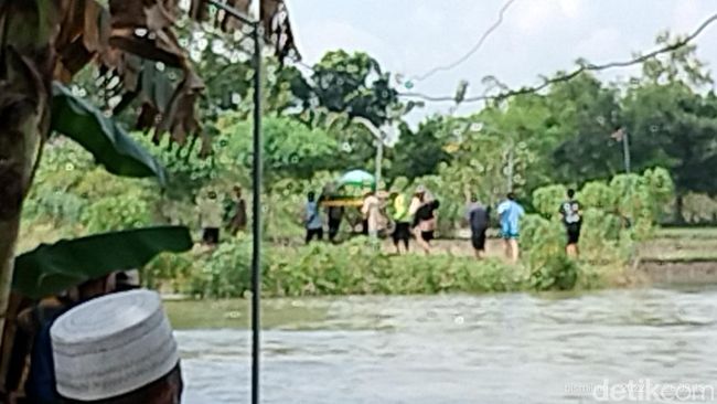 Sebelumnya, jenazah Almarhum Mulyono harus diantar dengan ambulans memutari 2 desa lain di kecamatan sebelah sejauh hampir 7 kilometer demi menghindari banjir luapan Sungai Pacal.