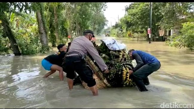 "Iya tadi siang harus kami evakuasi untuk dibawa ke rumah sakit, ibu dan anaknya karena banjir nggak bisa lewat mereka," ujar Kapolsek Sukosewu Iptu Safi'i.