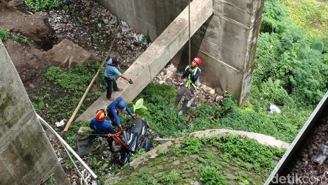 Petugas PMK yang melakukan proses evakuasi motor maupun korban cukup kesulitan karena medan yang terjal. Proses evakuasi itu memakan waktu hingga 1 jam.