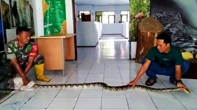 Sementara itu, Babinsa Sobo Serda Didik Budi Prasetyo mengatakan usai mendapat laporan, pihaknya langsung melakukan penyisiran bersama warga. Saat ditemukan di kandang, pihaknya langsung mengevakuasi ular.