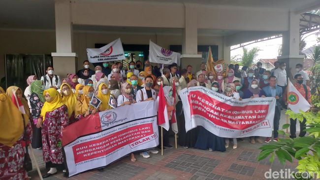 Dokter, bidan dan perawat Lamongan menolak RUU Omnibus Law Kesehatan. Mereka menilai Surat Tanda Registrasi (STR) berlaku 5 tahun penuh problem, apalagi seumur hidup.