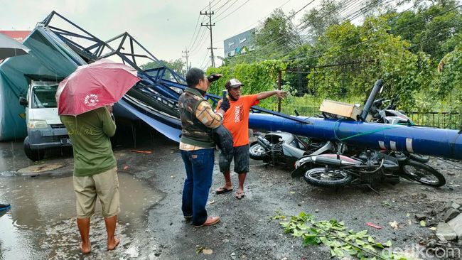 "Papan reklame roboh ke badan jalan. Ada 5 sepeda motor dan satu mobil pikap (yang tertimpa)," kata Kholil.