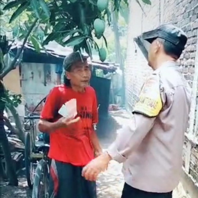 Salah satu yang mengunggah video Sukadi adalah akun TikTok @om_bhabin99. Di video berdurasi 53 detik itu tampak Sukadi memegang uang lembaran Rp 100 ribu di tangan. Sukadi yang memakai kaus merah berusaha menolah uang itu. Sedangkan seorang polisi berusaha meyakinkan Sukadi bahwa uang itu memang haknya.