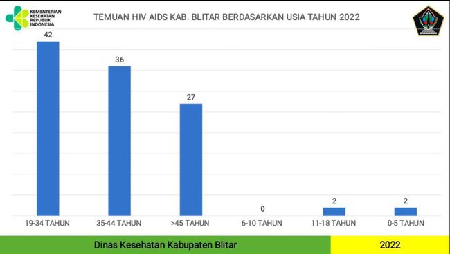 Dinkes Kabupaten Blitar mencatat ada dua balita terpapar HIV/AIDS selama Januari - November 2022. Dua balita itu diduga terpapar dari sang ibu yang juga penderita HIV/AIDS.