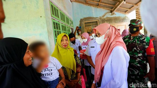 Ipuk meninjau perkembangan balita berusia 18 bulan dari Dusun Kabat Mantren, Desa Wringinputih itu, yang sebelumnya mengalami stunting.