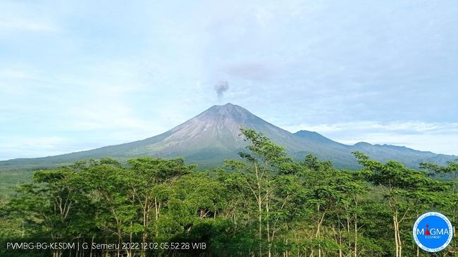 Gunung Semeru di Lumajang kembali erupsi, Jumat (2/12/2022). Erupsi terjadi pukul 05:50 WIB dengan tinggi kolom abu 500 meter di atas puncak gunung sekitar 4.176 meter di atas permukaan laut.