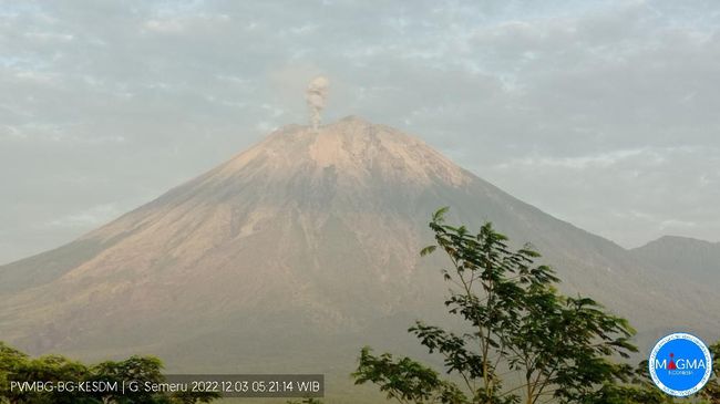 Gunung Semeru erupsi. Kali ini erupsi sekitar pukul 05.20 WIB, Sabtu (3/12/2022). Erupsi dengan tinggi kolom abu 500 meter di atas puncak gunung sekitar 4.176 meter di atas permukaan laut.