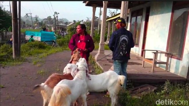 Dari pantauan detikJatim, warga tampak menyelamatkan beberapa ekor kambing. Hewan ternak itu tak sempat dibawa saat mereka mengungsi kemarin Minggu (4/12).