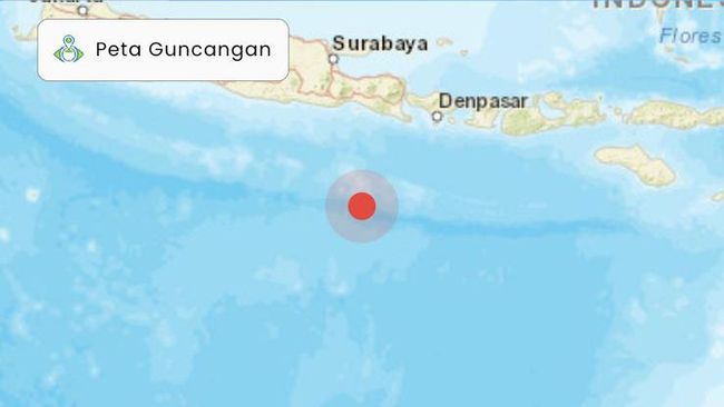 Pusat gempa berada di koordinat 10.75 Lintang Selatan (LS), 113.42 Bujur Timut (BT) di 284 KM Barat Daya Jember.