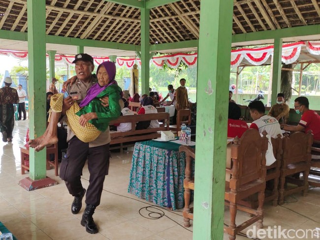 "Untuk warga yang lanjut usia, ya, harus dirayu terlebih dulu agar mau diajak vaksin. Kalau tidak ada kendaraan, ya, saya jemput-antar kembali. Tadi ada namanya Mbah Dami susah berjalan, ya, saya gendong," ujar Wakid.