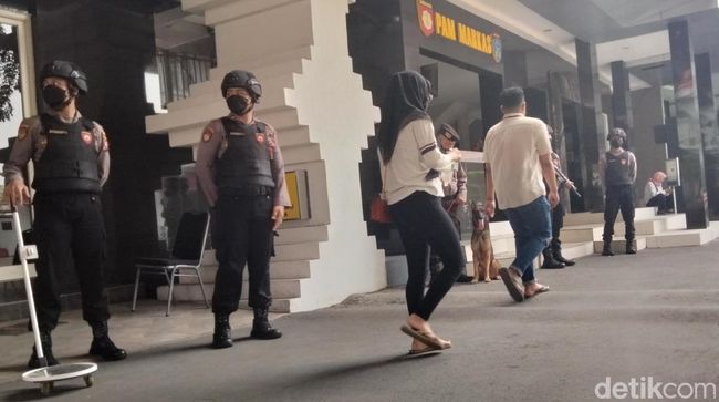 Dari pantauan detikJatim, tampak sejumlah petugas penjagaan menggunakan rompi antipeluru lengkap dengan senapan. Mereka memeriksa barang-barang bawaan dari para pengunjung masuk di area Polrestabes Surabaya.