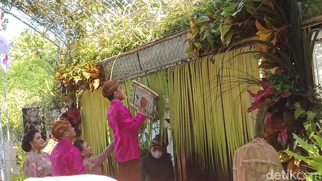 Prosesi siraman Kaesang Pangarep berlangsung di Sumber, Banjarsari, Solo. Sebelum prosesi tersebut, bleketepe atau anyaman dari daun kelapa dipasang langsung oleh Presiden Jokowi yang didampingi Ibu Negara Iriana Jokowi.