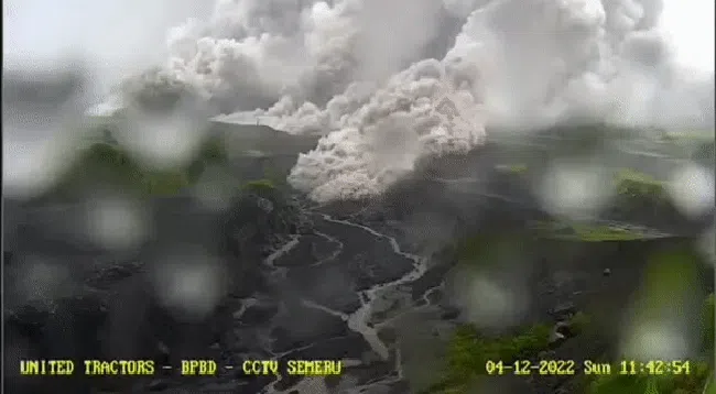 Puncak Mahameru memuntahkan Awan Panas Guguran (APG) hingga sejauh 7 km. Detik-detik awan panas meluncur cepat terekam jelas oleh CCTV BPBD setempat.