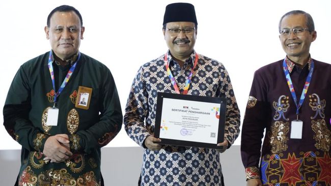 "Alhamdulillah KPK menilai indeks pencegahan korupsi (MCP) Kota Pasuruan naik cukup tajam dengan peningkatan mencapai 37,46. Dulu nilai kita hanya 44 sekarang jadi 82 lebih," kata Wali Kota Pasuruan Saifullah Yusuf (Gus Ipul) usai menerima penghargaan dari KPK, Jumat (9/12/2022).