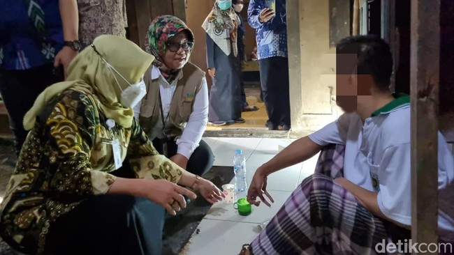 Usai pasung dilepas, petugas Dinsos dan Sentra Margo Laras mengobrol dengan SU. SU bahkan sempat diberi minum kopi hingga makan.